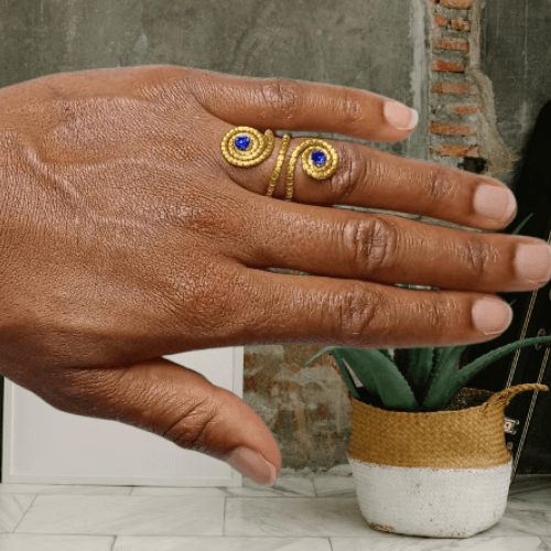Elegante e cheio de charme, este anel é a combinação perfeita entre o natural e o sofisticado. Produzido artesanalmente com capim dourado, acabamento em linha dourada e detalhes em strass, ele adiciona brilho e personalidade a qualquer look.