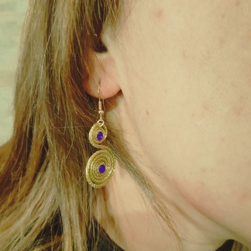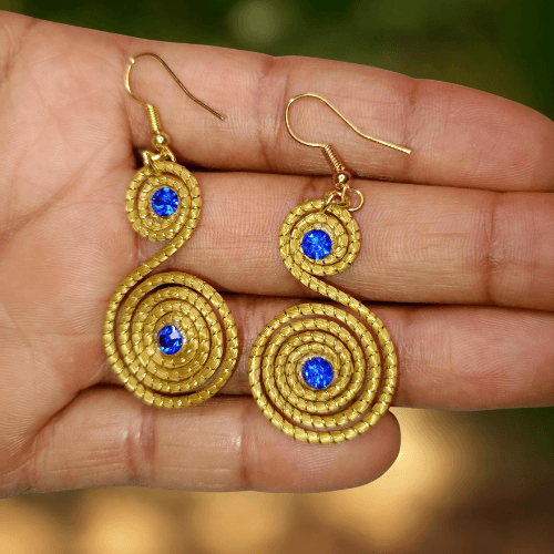 ✨ Brinco “S” de Capim Dourado com Strass na Cor Azul e Acabamento Ouro Verde ✨