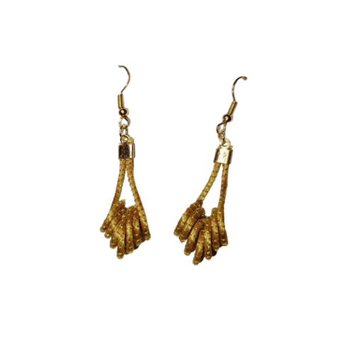 ✨ Brinco Túnel de Capim Dourado com Acabamento Ouro Verde ✨