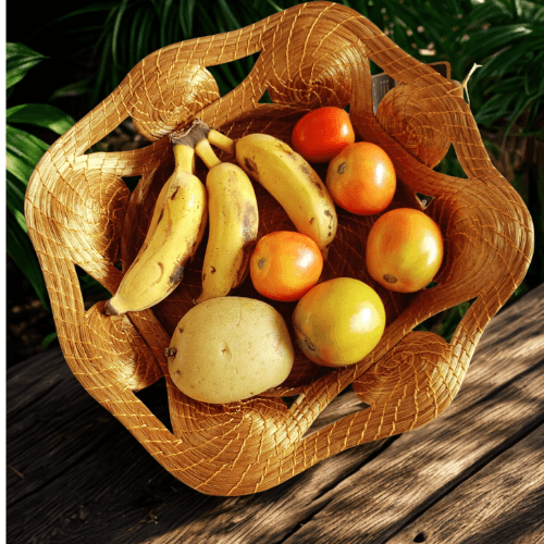 Ideal para acomodar frutas, pães ou simplesmente compor a mesa e o ambiente com elegância, essa fruteira une funcionalidade e beleza, valorizando o trabalho manual e a tradição do artesanato brasileiro. Cada peça é única, feita à mão, o que garante autenticidade e personalidade ao produto.