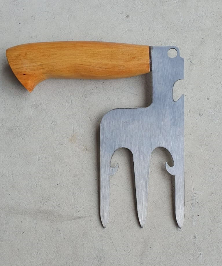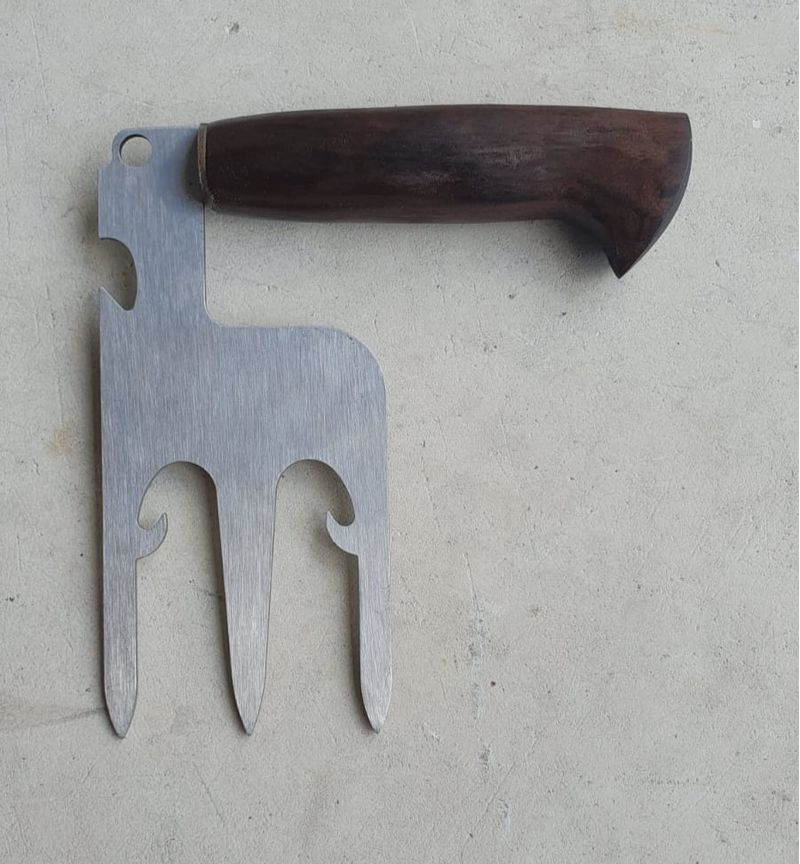 A Garra Trident Integral é muito mais do que uma simples ferramenta de churrasco; ela é um acessório versátil que eleva a arte de assar carnes a um novo nível. Feita em aço inoxidável, essa garra não apenas ajuda a cortar e fatiar carnes com precisão, mas também é equipada com características adicionais que a torna indispensável para os entusiastas do churrasco. O design da Garra Trident apresenta uma lâmina afiada e pontiaguda, semelhante a um tridente, permitindo que você destrinche carnes com facilidade, garantindo pedaços mais suculentos e cortes mais precisos. A empunhadura em madeira nobre proporciona aderência confortável, além de conferir também uma estética refinada ao acessório. Uma característica inovadora desta garra é o abridor de cerveja na lateral, que se torna uma ferramenta completa para churrascos e encontros ao ar livre. Agora você pode abrir sua cerveja favorita com facilidade enquanto prepara a carne. Além disso, o furo para pendurar permite que você mantenha uma Garra Trident sempre à mão, seja na churrasqueira ou na cozinha. Esta é uma ferramenta essencial para quem valoriza a precisão no corte de carnes e a facilidade na hora de servir. Com a Garra Trident Integral, você pode se destacar na arte do churrasco e garantir que suas refeições sejam deliciosas e visualmente impressionantes. Podemos personalizar a sua garra com seu nome, nome da fazenda ou brasão da família! Para manter sua vida útil, mantenha a garra sempre afiada com auxílio de uma chaira ou pedra de amolar de gramatura fina. Mantenha a peça sempre limpa e seca. Não use sobre superfícies como pedra ou vidro. Deixe fora do alcance da luz solar.