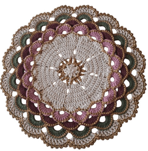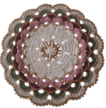 Jogo Americano Redondo de Crochê nas cores rosa, verde e vinho