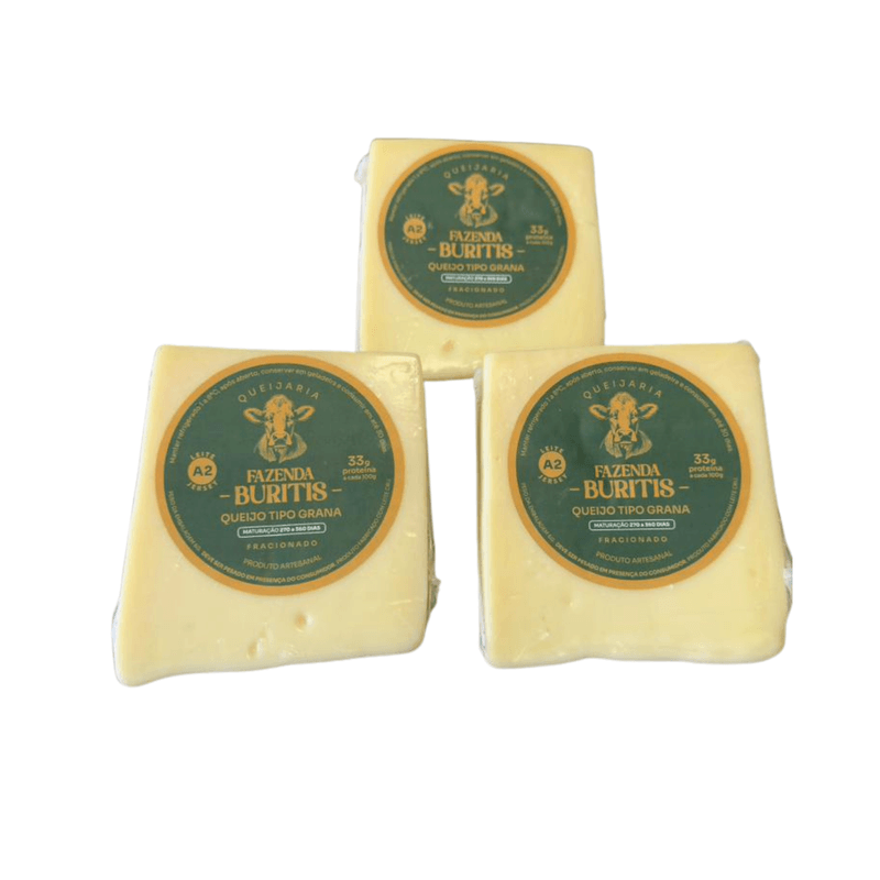 Diretamente de Lagoa da Prata, este Queijo Tipo Grana é uma verdadeira joia da maturação longa. Comercializado em formato de cunha, com peças entre 300 e 350 g, ele passa por um cuidadoso processo de 12 a 18 meses de maturação, que transforma sua estrutura e intensifica seus sabores.